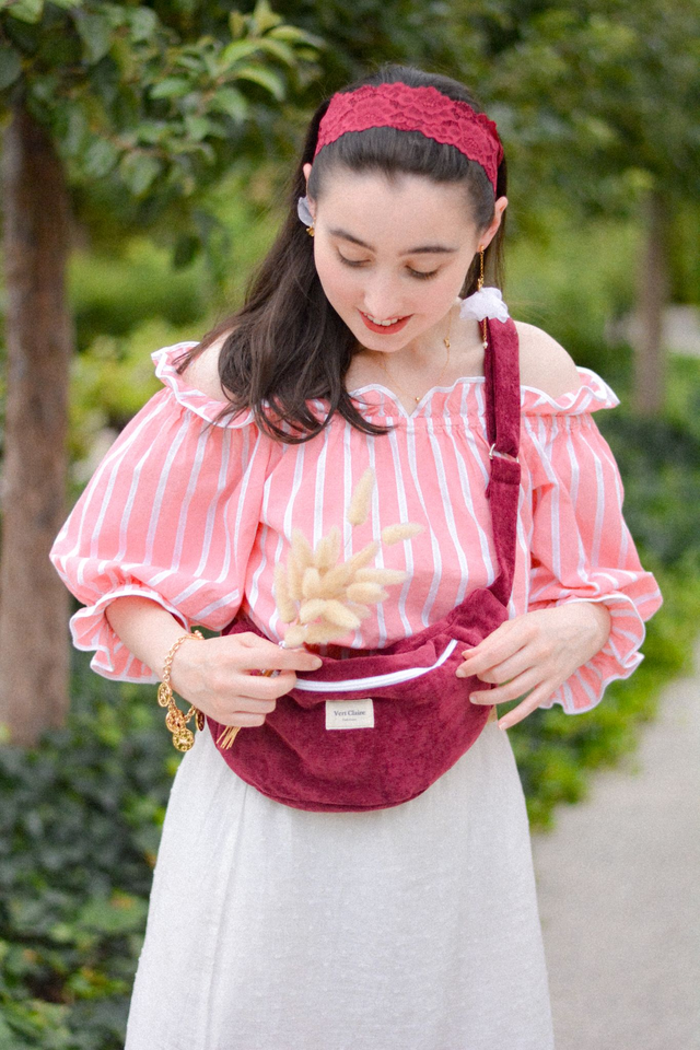 Sac banane en velours côtelé, l’élégance texturée au quotidien.